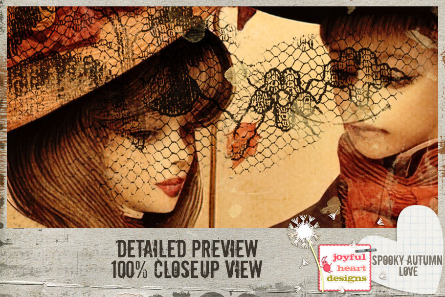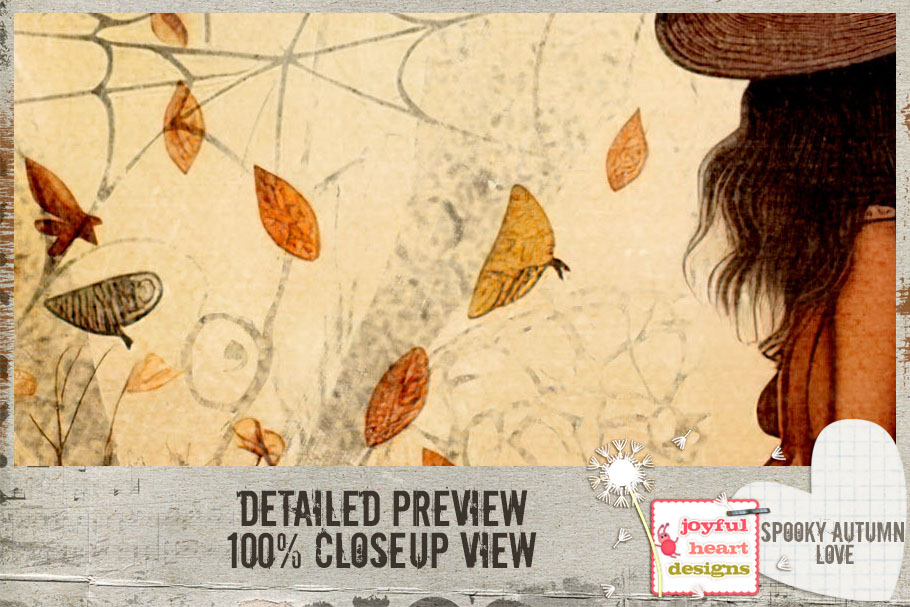 52 Inspirations 2023 No 44 Spooky Autumn Love Digiscrap Papers by Joyful Heart Design include a variety of colorful, mixed media backgrounds for digital scrapbooking, art journaling, junk journals, DIY greeting cards, or any printable art projects.