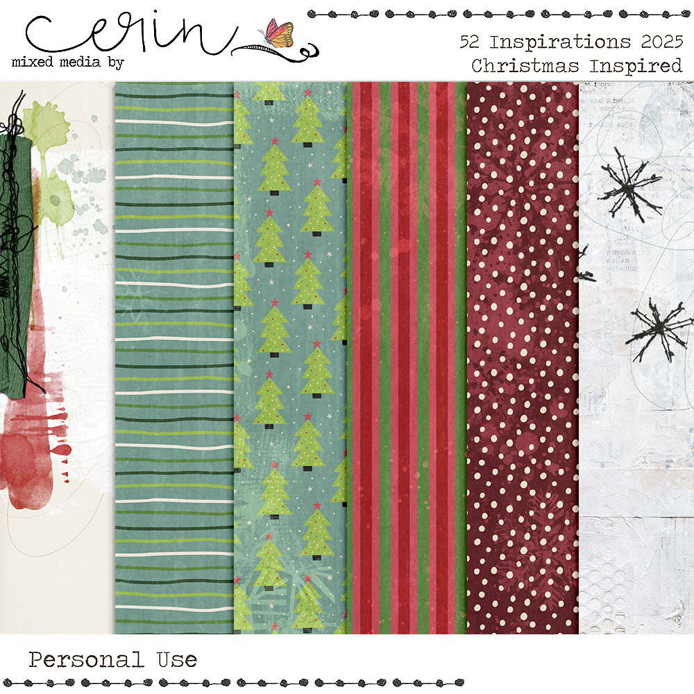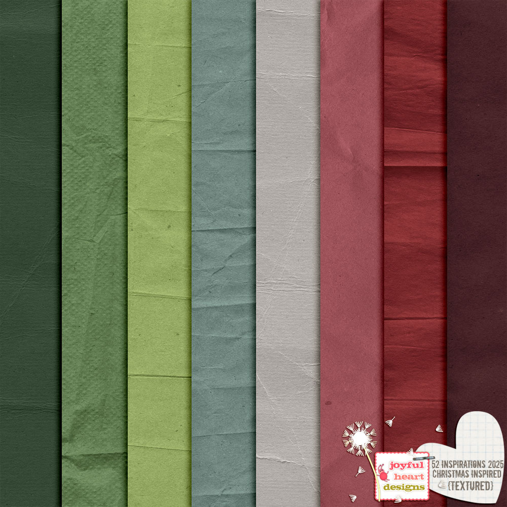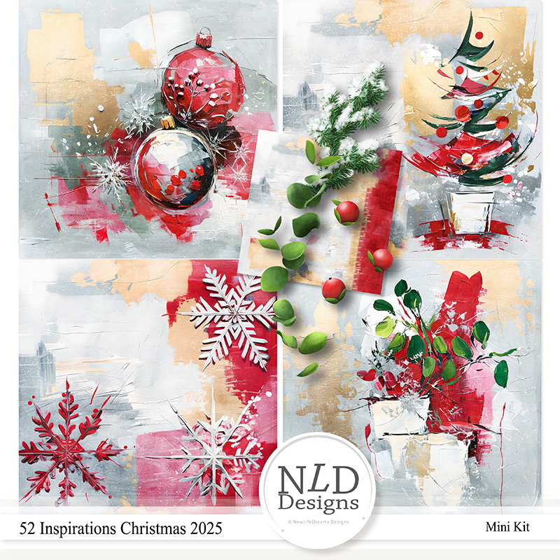 52 Inspirations 2025 – No. 51: Christmas Inspired Papers is a beautifully curated digital paper collection featuring 38 richly textured and artistically designed papers from ArtAddicts, Joyful Heart Designs, FoxeySquirrel, Mixed Media by Erin Wright, ninigoesdigi, and NLD Designs. This collaborative paper pack brings together six distinct design styles into one cohesive holiday palette, offering incredible versatility for festive storytelling and creative projects.