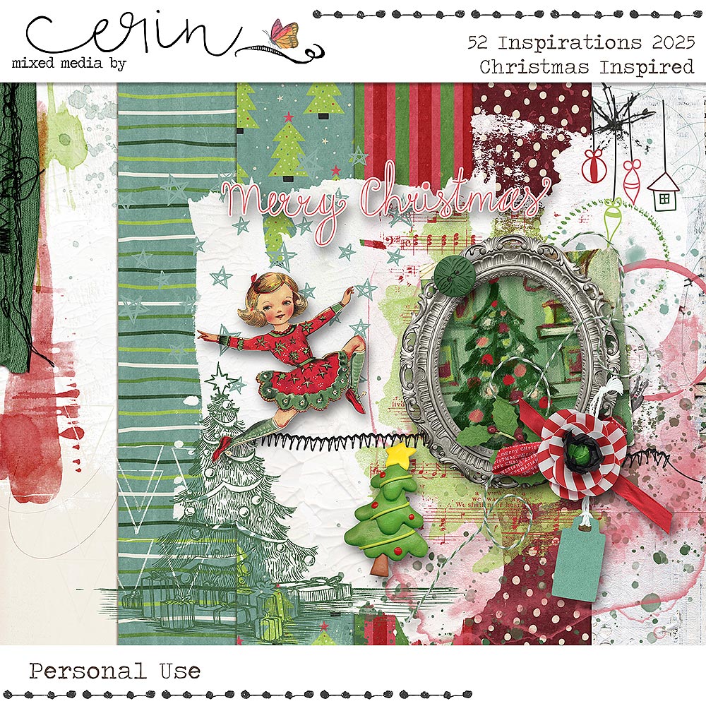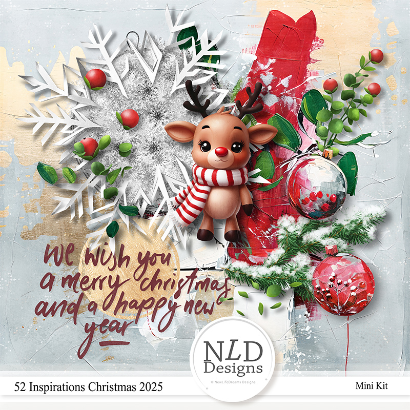 Celebrate the joy, magic, and nostalgia of the holiday season with 52 Inspirations 2025 – Christmas Inspired, a richly layered digital scrapbooking collection created by Mixed Media by Erin Wright, FoxeySquirrel, NLD Designs, and Vicki Stegall Designs. This festive release brings together the creative styles of four designers into one cohesive kit, delivering 122 beautifully detailed elements—the equivalent of four weekly 52 Inspirations packs—for endless creative possibilities.