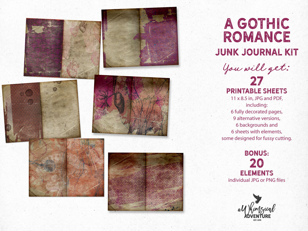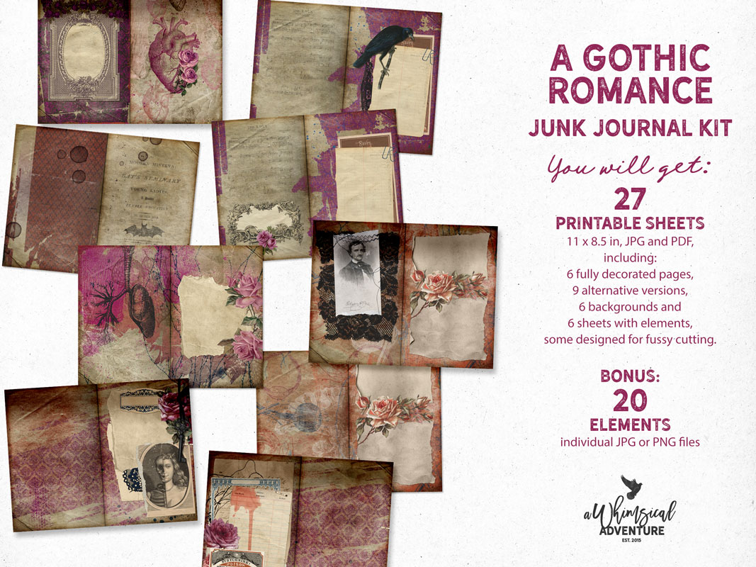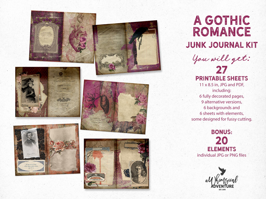 Uses: junk journaling, vintage scrapbooking, romantic Halloween crafts, printable cards, mixed media art, altered books, memory keeping