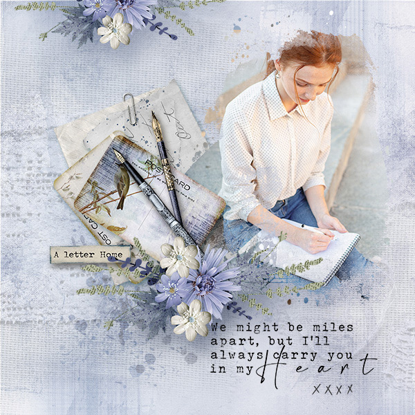 A letter home series is full of gorgeous elements in shades of soft blue, lilac and cream, coordinating papers, clusters, postcards and WordArt, perfect for all your everyday scrapbook pages.