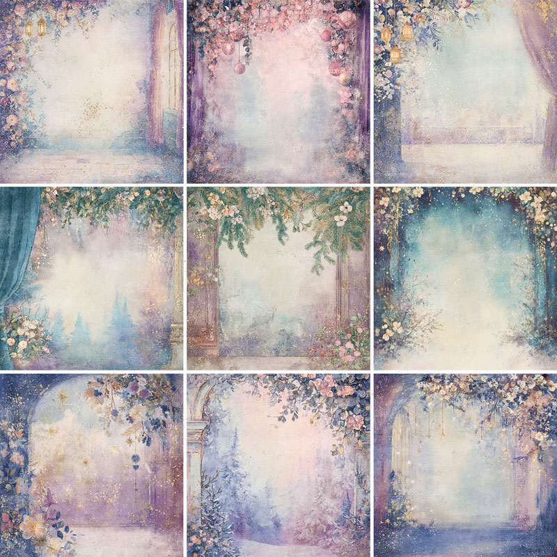 A Nutcracker Christmas is a kit inspired by classic storybook imagery and the theatrical atmosphere of the ballet, rooted in the traditions of a winter night set on Christmas Eve. The palette blends porcelain whites, pale winter blues and deep midnight tones, softened by blush accents, muted reds and warm touches of gold. Decorative details hint at the Land of Sweets without becoming playful or overly sweet, keeping the overall look elegant and balanced. Vintage textures, painterly details and subtle nods to ballet and festive interiors give the collection its timeless winter feel.