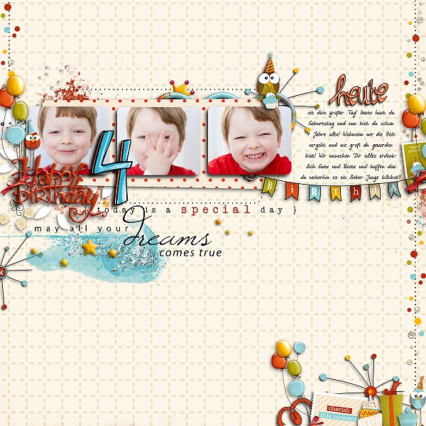 Birthday is always a special day for every of us. And for every kids, birthday means cake and gifts, party and fun. With lots of papers and elements, you can create an album with this kit.