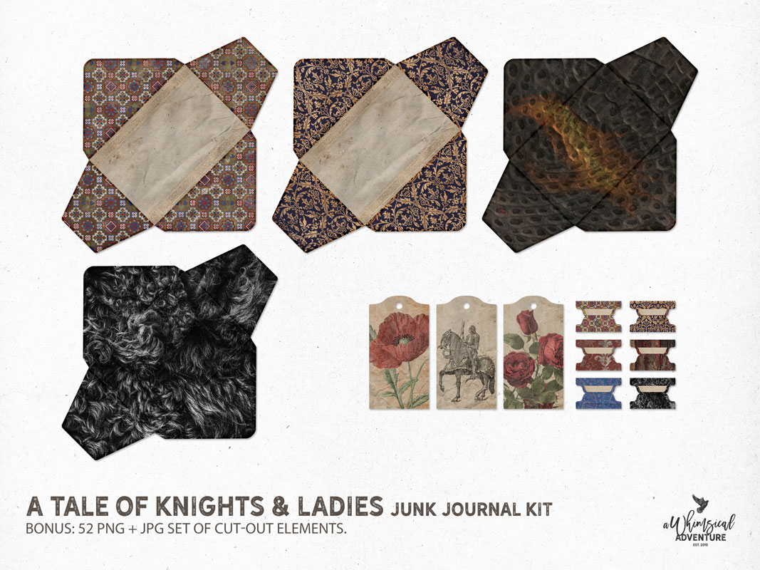 A Tale of Knights & Ladies Junk Journal Kit is a beautifully crafted companion to A Song of Kings & Queens, bringing the romance, mystery, and grandeur of medieval times to your journal pages. Inspired by noble lords and ladies, gallant knights, ancient castles, and legendary tales, this kit blends timeworn textures, vintage ephemera, and evocative Pre-Raphaelite artwork to immerse you in a world of chivalry and enchantment.