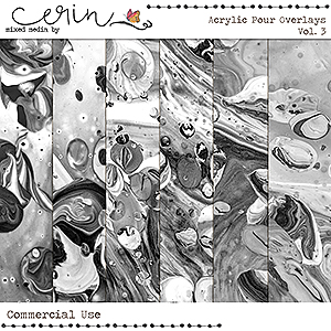 Acrylic Pour Overlays Vol. 1 is a commercial use ovelay pack that features 6 different greyscale textures of acrylic paint pours.