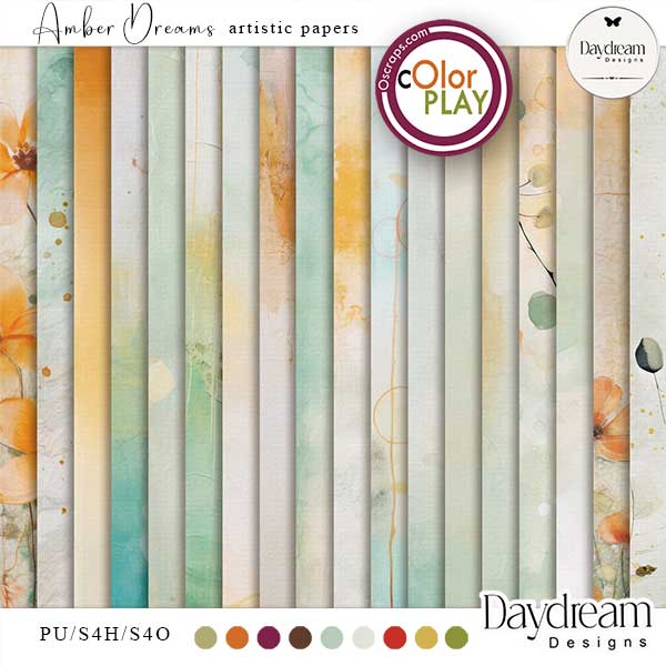 The trees prepare for their grand finale as summer's heat gives way to cooler temperatures. Leaves that once shimmered with green vitality now burst into vibrant shades of red, orange, yellow, and deep crimson. The landscape becomes a living canvas, with each leaf a brushstroke in nature's masterpiece. The breeze whispers secrets of the changing season, carrying the scent of fallen leaves and bonfires. Fields and orchards come alive with activity as Pumpkins, apples, and grapes are ripe for the picking, filling the air with the earthy sweetness of freshly harvested fruits. The Amber Dreams digital scrapbook series includes plenty of flowers, foliage, and coordinating papers. It is also suited for cards, invitations and gift tags and is perfect for incorporating into your digital art pages or journals.