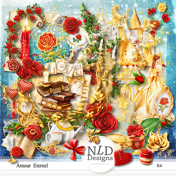 The Amour Eternel by NLD Designs includes an assortment of papers and elements to help you create love & fairytales themed scrapbook pages and printable art projects.