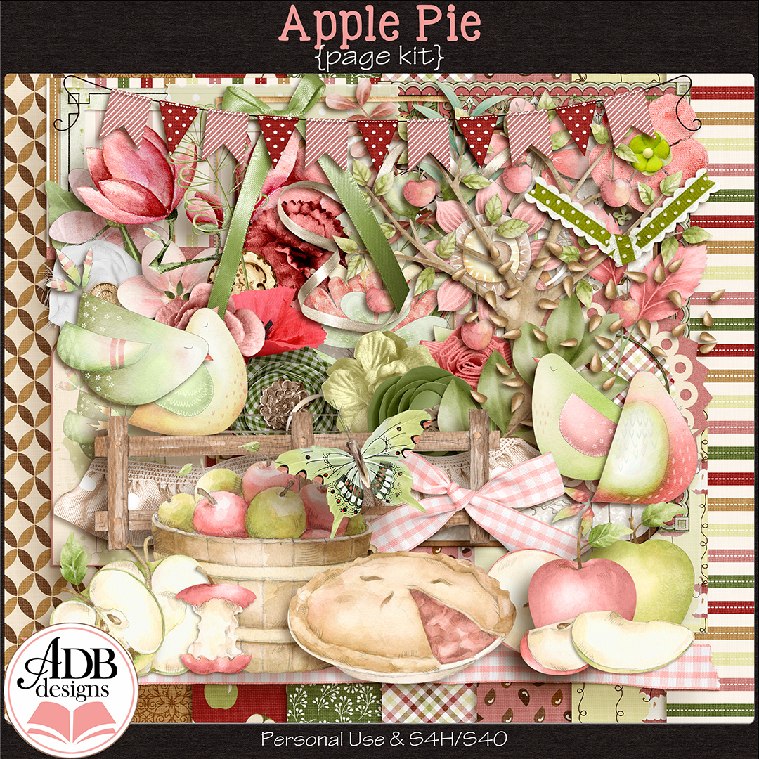 The Apple Pie Collection by ADB Designs is a mix of watercolor and realistic elements and makes for a delightful and fun collection to scrap all your spring and summer photos – whether outdoors playing or inside cooking!
