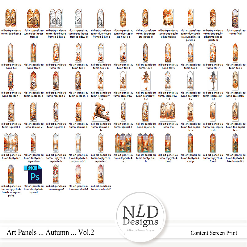 44 unique digital panels with different designs like landscape,forest animals & autumn scenes with variations for 59 files Total