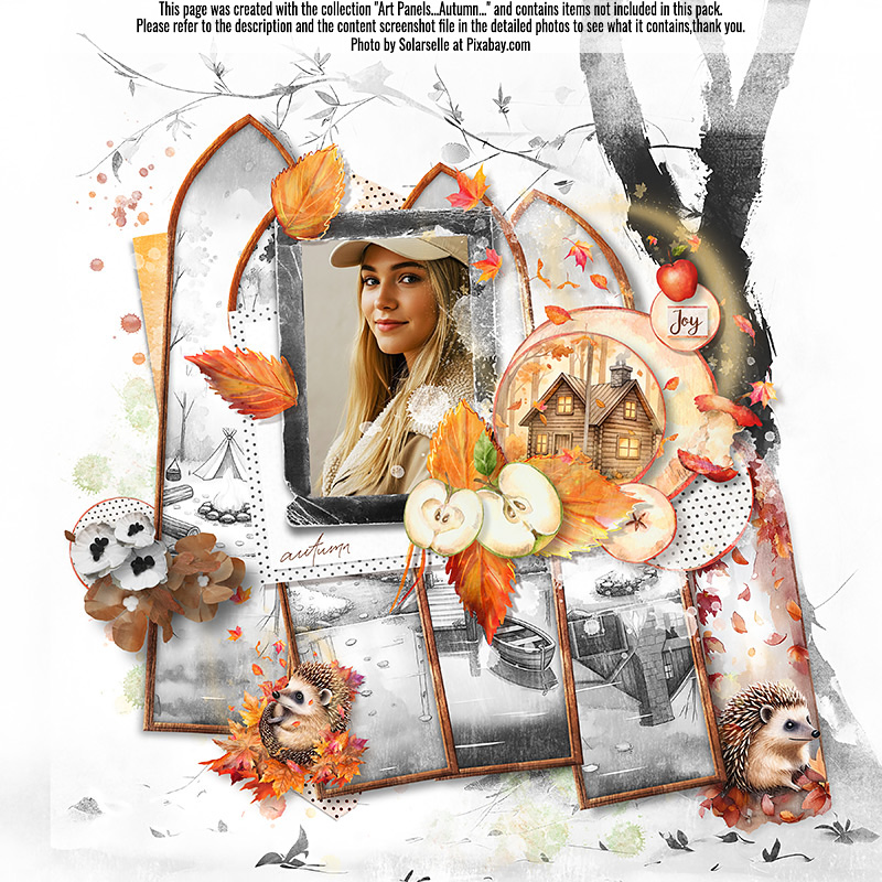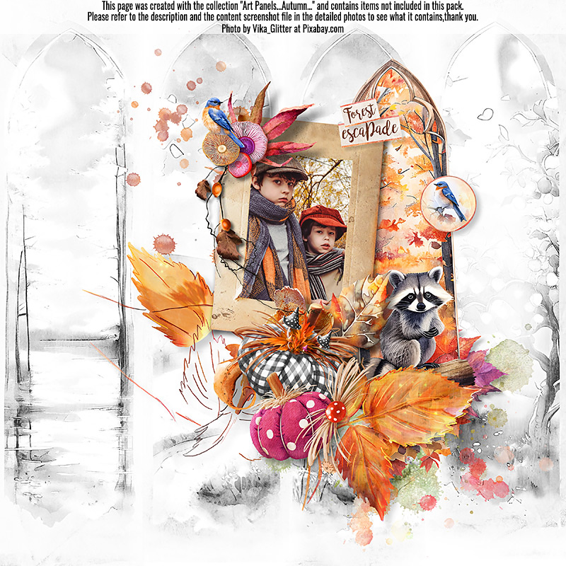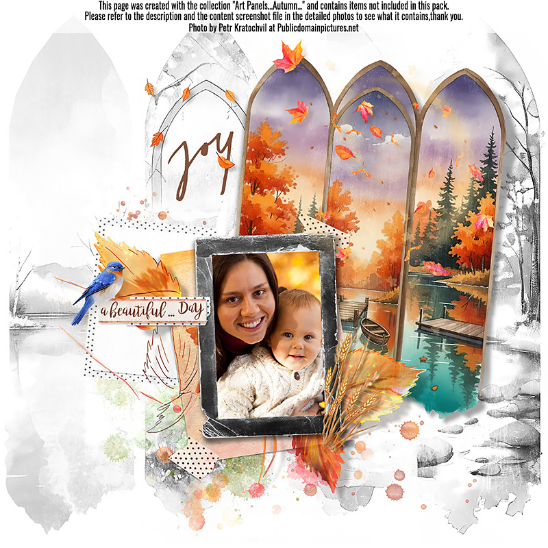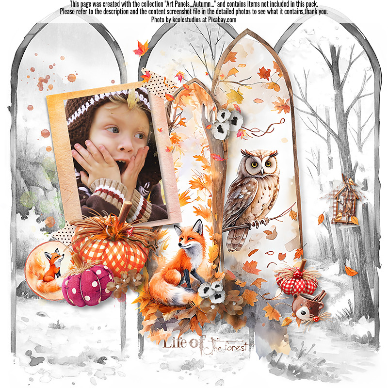 The layouts have been created with the collection "Art Panels...Autumn..." and contains items not included in this pack,please refer to the description and the content screenshot file in the detailed photos to see what it contains,thank you.