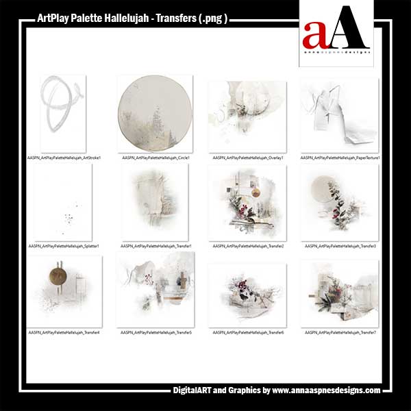 9 artsy and solid/pattern 12 X 12 background papers, 16-piece BrushSet, 12 transfers/overlays, and 15-dimensional embellishments delivered in .psd and .png format to maximize customization.