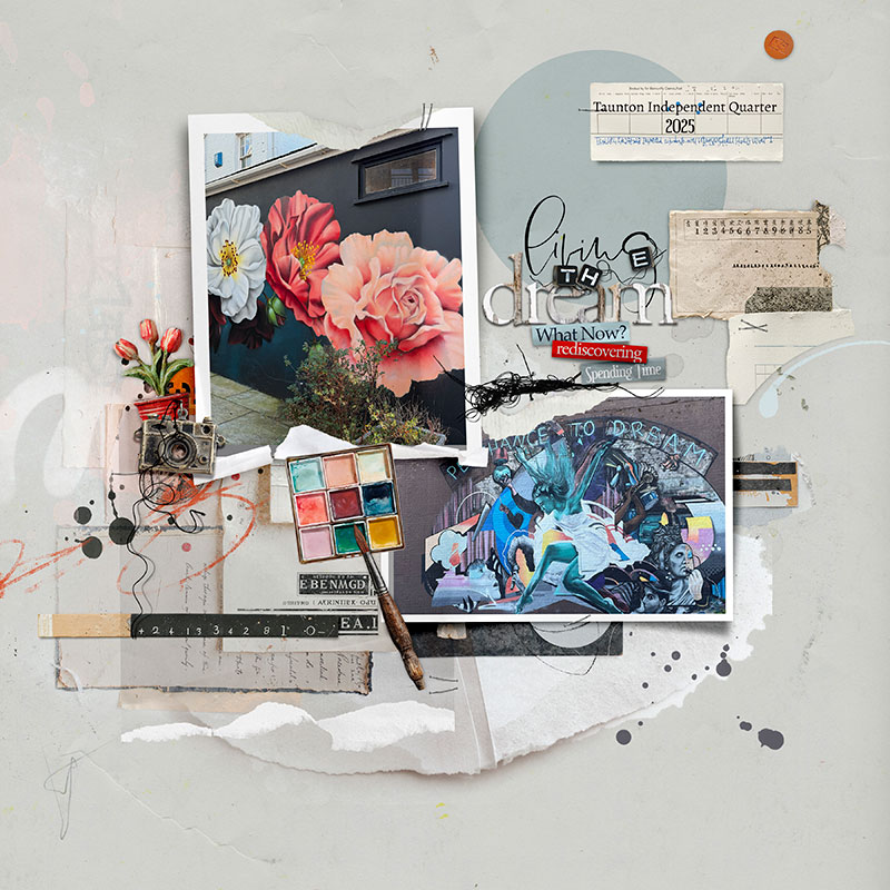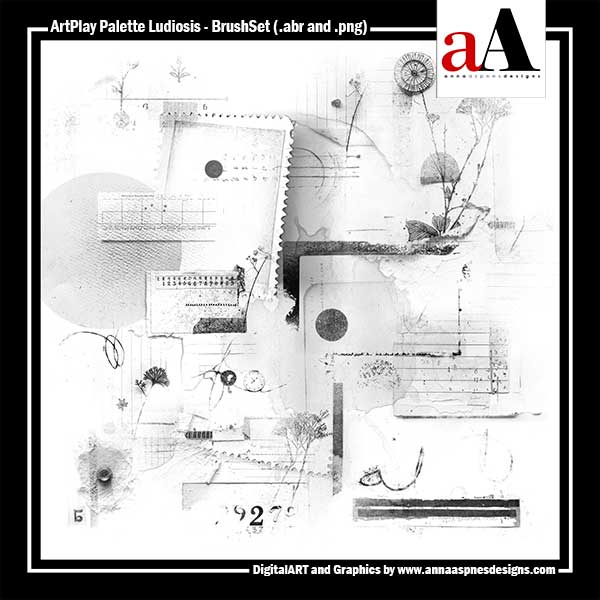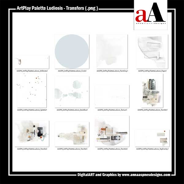 9 artsy and solid/pattern 12 X 12 background papers, 16-piece BrushSet, 12 transfers/overlays, and 15-dimensional embellishments delivered in .psd and .png format to maximize customization.