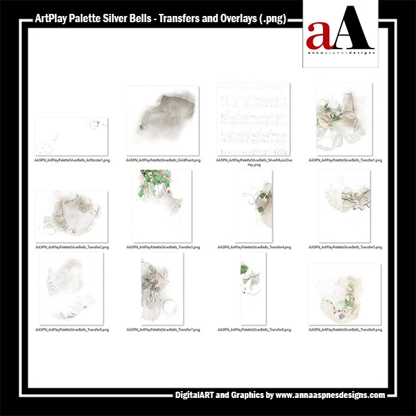Let them ring. This ArtPlay Palette includes 9 artsy and solid 12 X 12 background papers, a 16-piece BrushSet, 12 transfers/overlays and 14 dimensional embellishments delivered in .psd and .png format to allow for maximum customization where appropriate. Please download the free Instructions for Use eBooklet from the FreeART category in my store for more information on using my various designs in Photoshop and Elements and check out the videos on the aA Youtube channel.