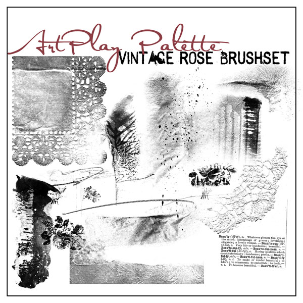 This ArtPlay Palette includes 11 Artsy and solid 12 X 12 background papers, a 15-piece BrushSet, and a large variety of dimensional embellishments, transfers, overlays and WordART elements. Please download the free Instructions for Use eBooklet from the FreeART category in my store for more information on using my various designs in Photoshop and Elements.