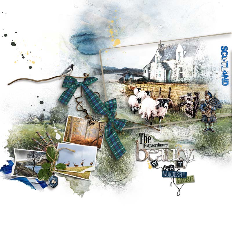 A collection of 5 ‘blendable’ green and blue Great Britain, England, Scotland, Wales, countryside and landscape travel-inspired transfers in layered .psd format for photo artistry and artsy digital scrapbooking. Designed to coordinate with ArtPlay Palette Folklore:
