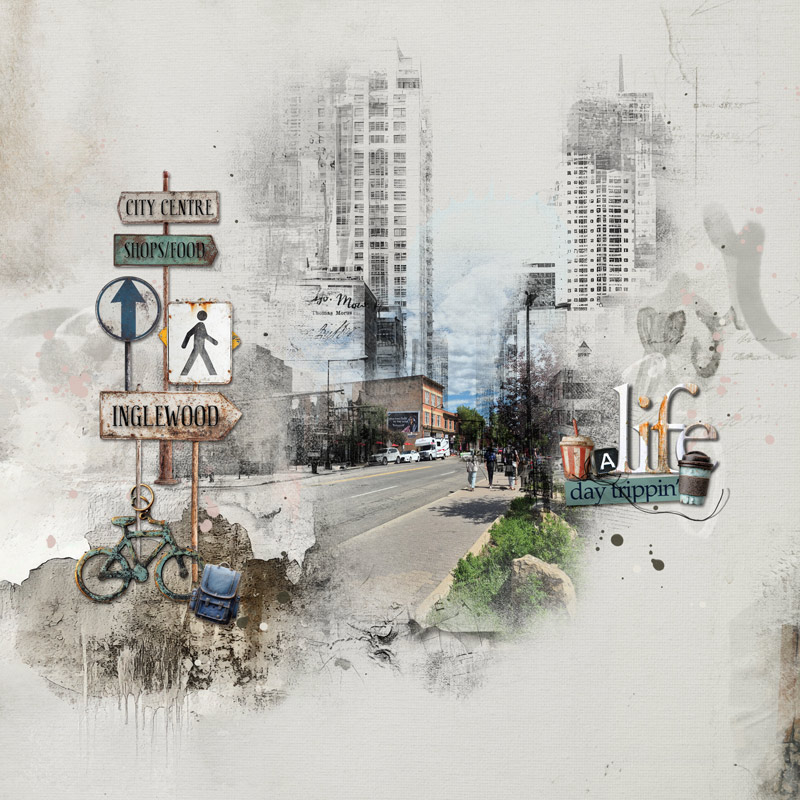 A collection of 5 ‘blendable’ urban, town, vacation, getaway-inspired transfers in layered .psd format for photo artistry and artsy digital scrapbooking and designed to coordinate with ArtPlay Palette Gadabout: