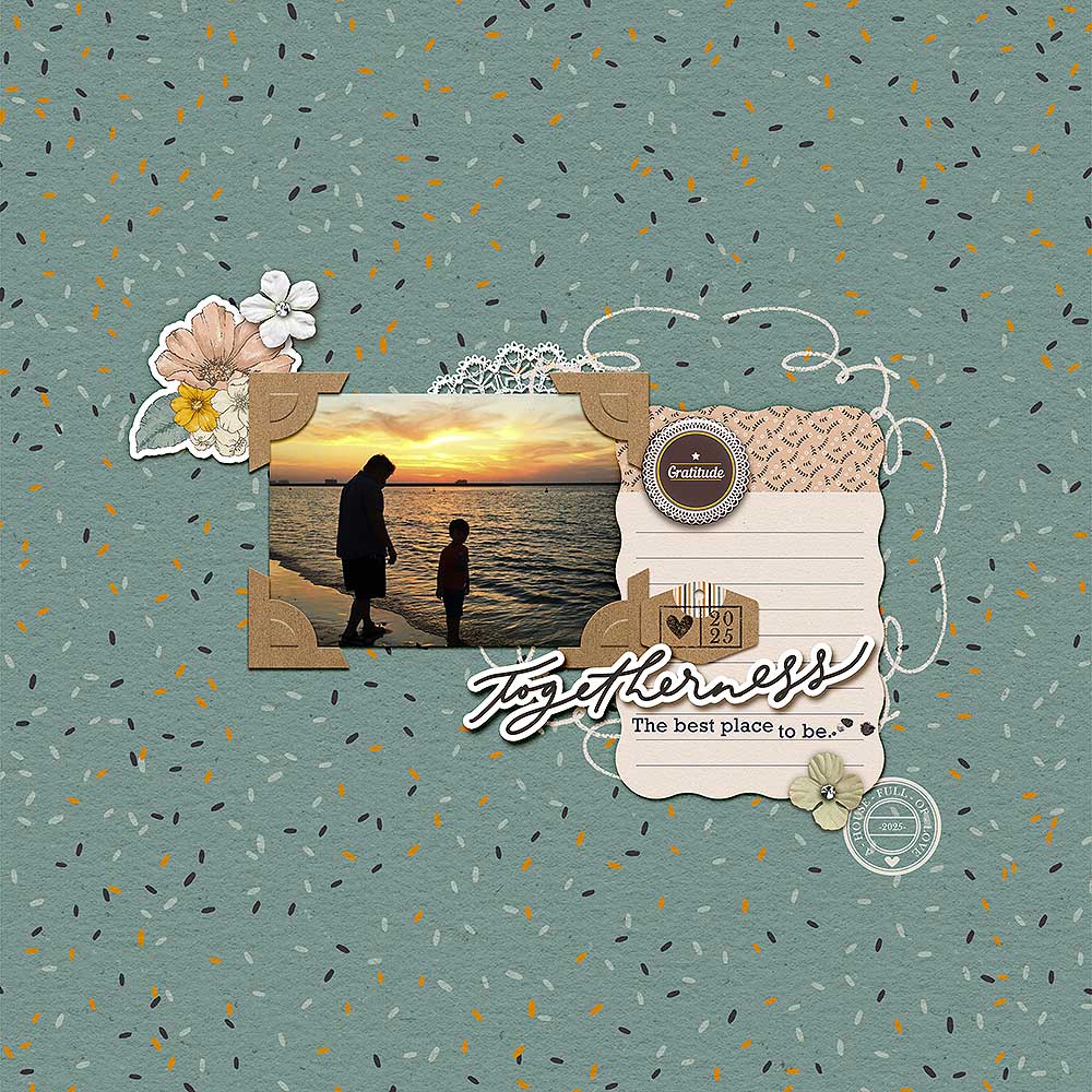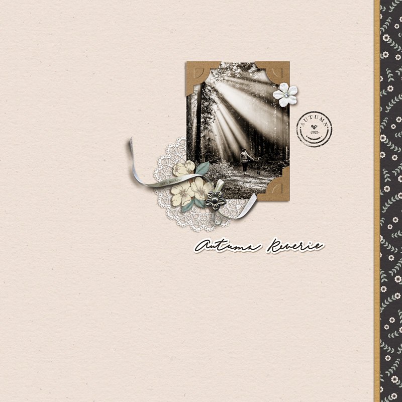 A romantic yet rustic scrapbook kit that captures the essence of autumn — from misty mornings and gentle transitions to golden harvest evenings. Soft whites, warm clays and muted greens create a timeless palette. Perfect for journaling gratitude, cozy home memories, and the quiet poetry of fall.