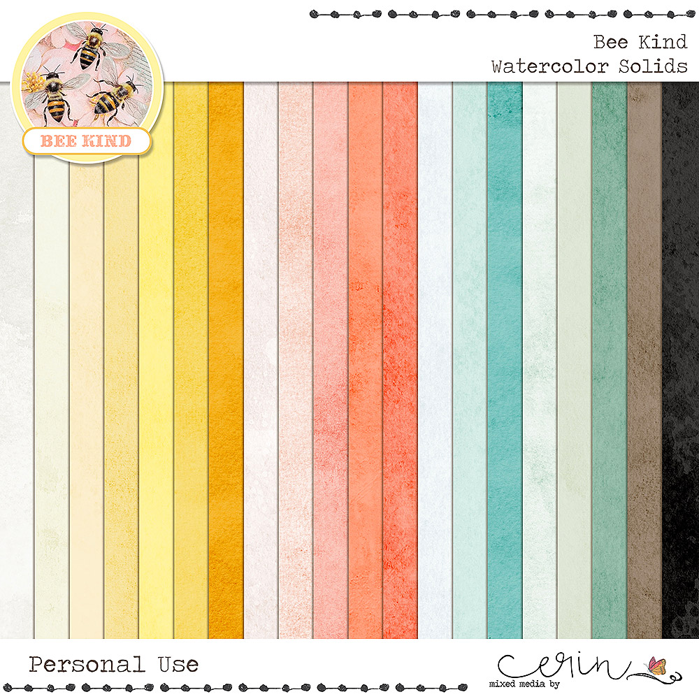 Bee Kind {Watercolor Solids} by Mixed Media by Erin is a digital art Paper Pack that coordinates with the Bee Kind Collection.