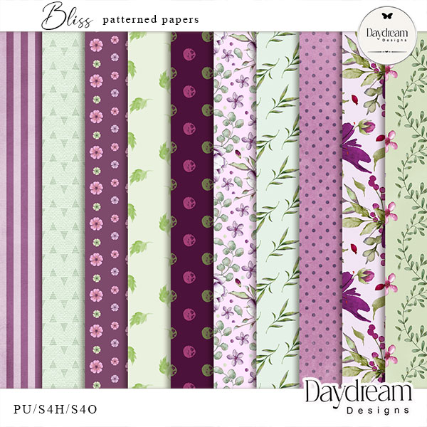 There's nothing quite like those blissful moments in life when everything seems perfect. Those moments are the ones that we cherish the most. Whether it's time spent with our loved ones, family, or friends or outdoors in nature, those moments make life worth living. They remind us of how blessed we are and help us appreciate all the good things life offers. The Bliss digital scrapbook series includes plenty of flowers, foliage, and coordinating papers. The Bliss collection is also suited for cards, invitations and gift tags and is perfect for incorporating into your digital art pages or journals