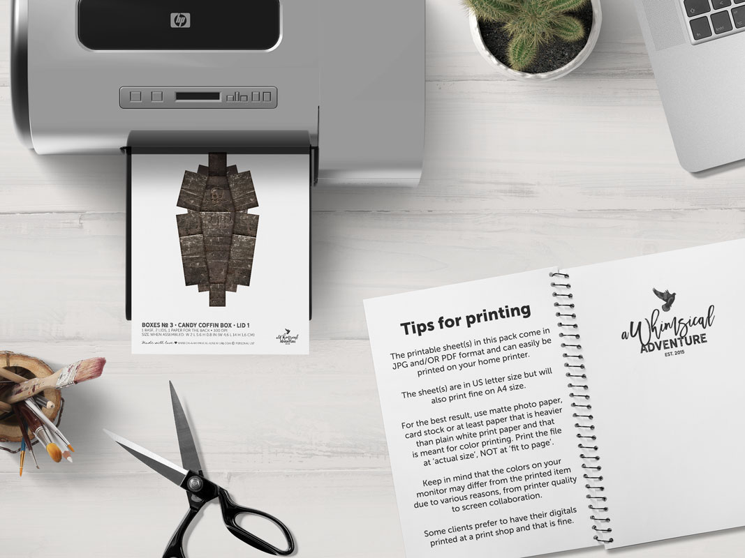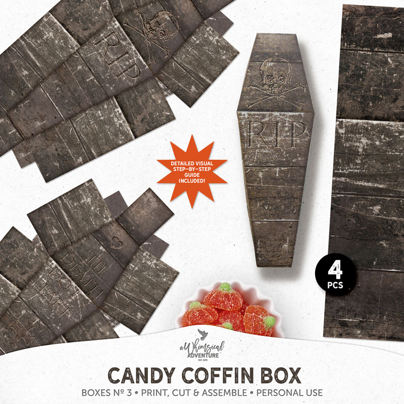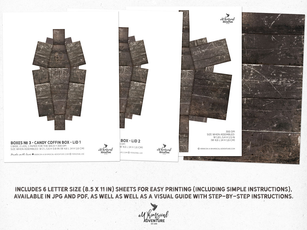 Uses: Halloween party favors, treat boxes, small gift packaging, printable crafts, table decorations, DIY spooky décor