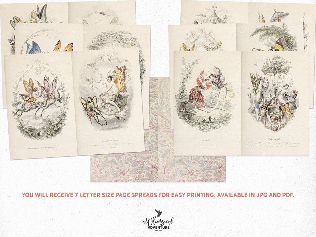 This whimsical set of journal ephemera features vintage illustrations from the 1852 book Les Papillons. Métamorphoses terrestres des peuples de l'air by Amédée Varin, where butterflies are delightfully personified as people, making this set a playful yet nostalgic addition to your collection. Perfect for projects with a fairytale, fantasy, or nature-inspired theme. Use them in whimsical journals, mixed media collages, imaginative storytelling pages, or as charming focal points in greeting cards and tags. These butterfly people bring a touch of the surreal and the magical to anything you create.