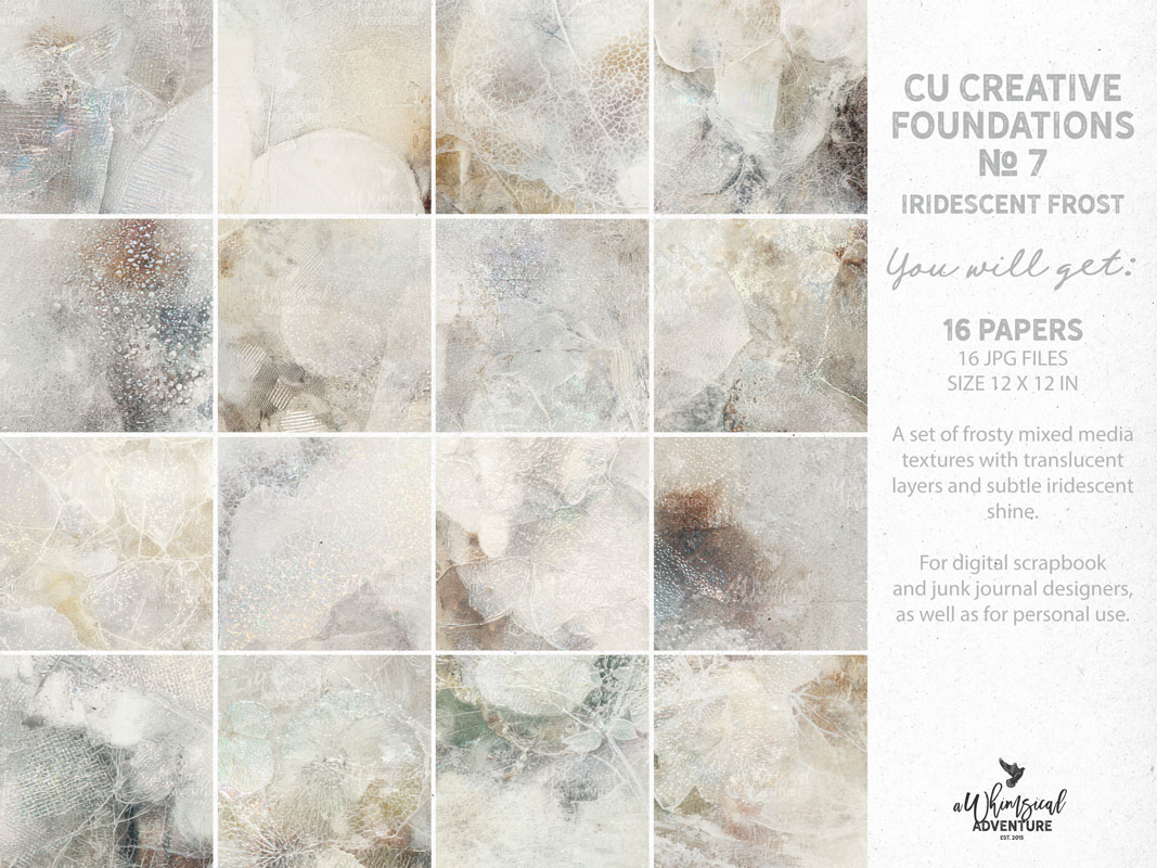 Styles: softly textured backgrounds, layered painterly surfaces, iridescent shimmer effect, abstract floral impressions, muted artistic look