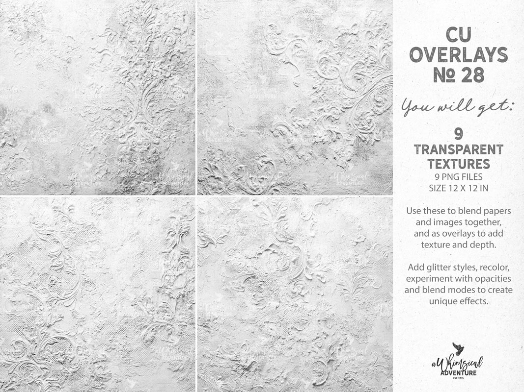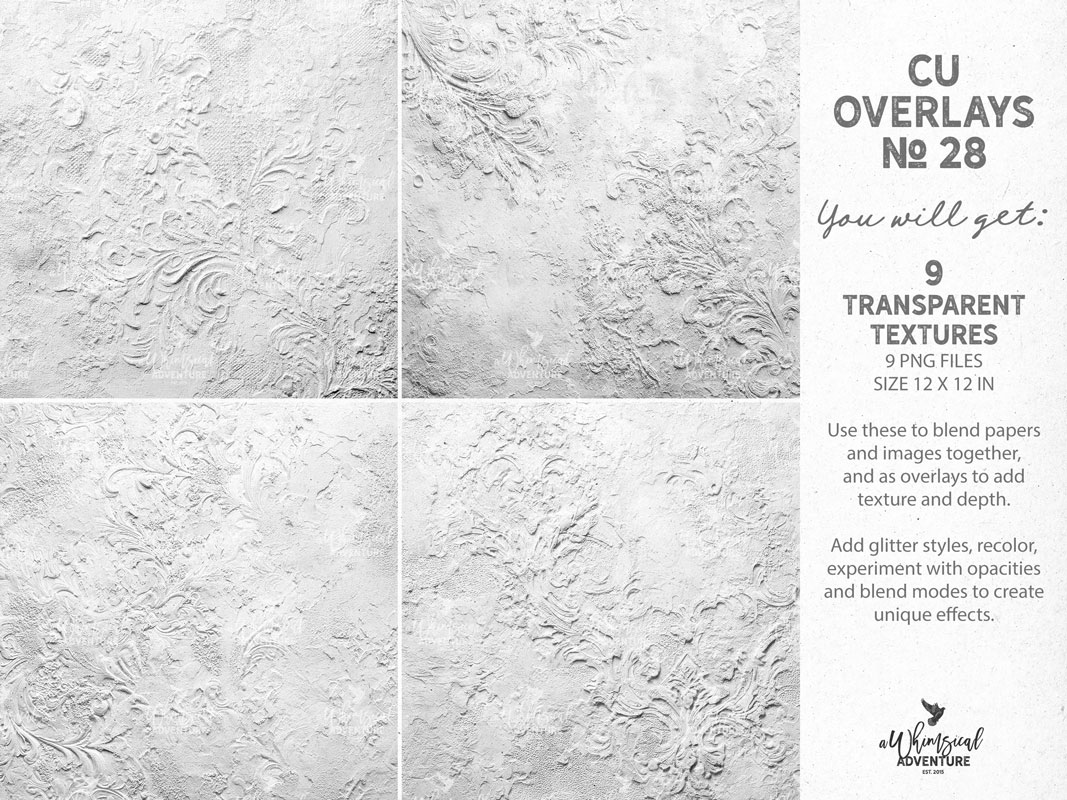 CU Overlays No 28 Stucco Flourishes: 9 PNG files, 12 x 12 in
