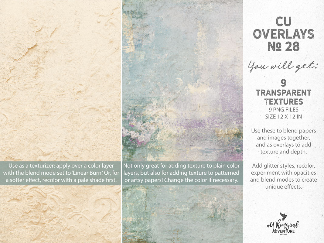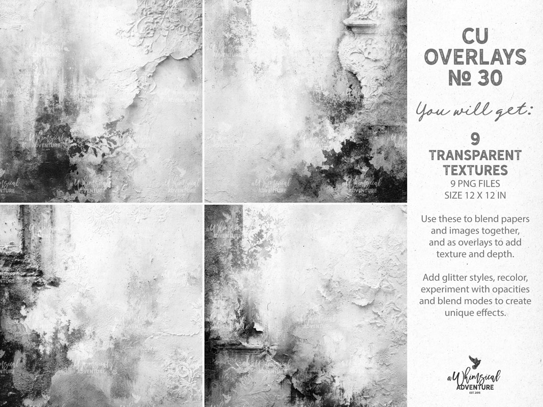 CU Overlays No 31 Distressed Surfaces: 9 PNG files, 12 x 12 in
