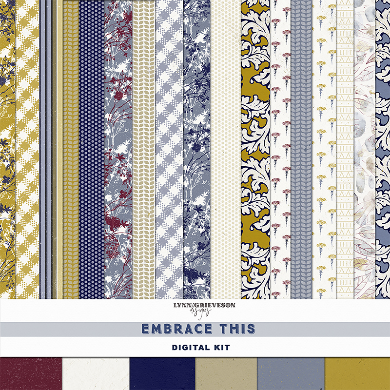 "Embrace This" is a detailed, autumnal digital scrapbooking kit themed around acceptance and enjoyment of real and everyday life