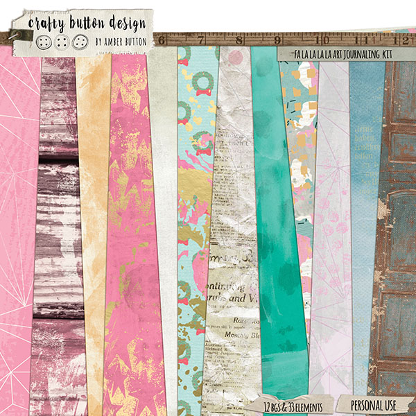 Merry Kitschmas everyone! To celebrate I've created a kitschy, tacky for all the right reasons, vintage Holiday collection called Fa La La La La. This is the main kit which includes 12 mixed media backgrounds and 33 elements all in a vintage holiday theme. These elements and backgrounds are not sold separately.