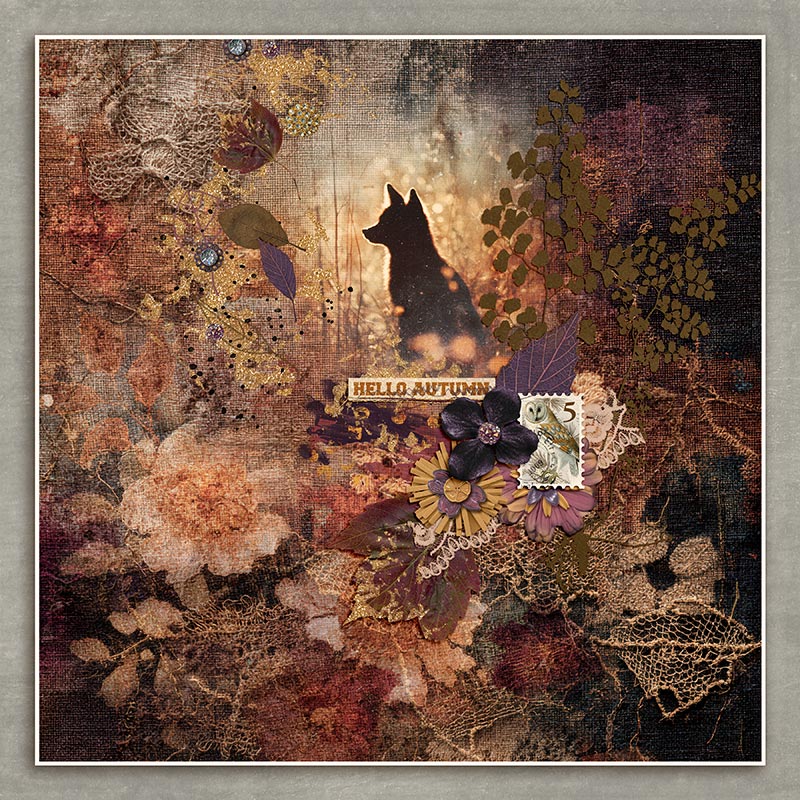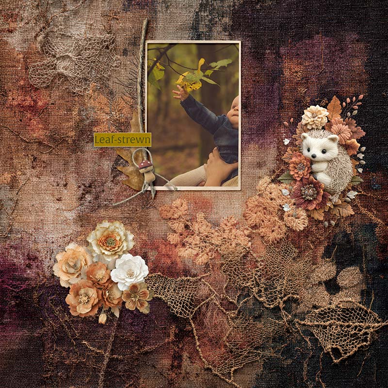 Themes: textile-like florals, vintage fabrics, autumn tapestry, faded patterns, layered textures, timeworn surfaces, seasonal botanicals