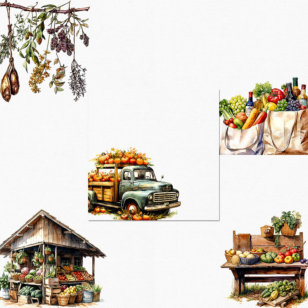 Farmer's Market Collection Bundle is a personal use Digital Art Paper Pack that features 65 papers and 10 watercolor papers that coordinate with the colors of the Farmers Market Collection.