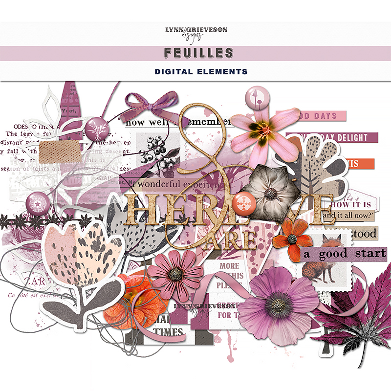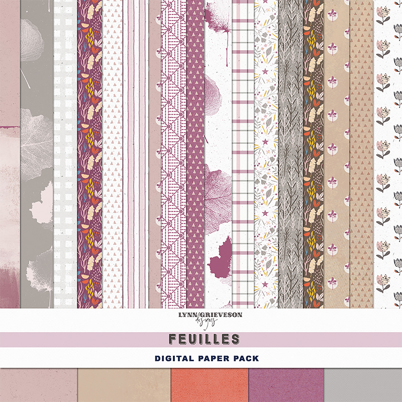 "Feuilles" = "leaves" (French). Perfect for this detailed autumnal collection of patterned papers and unique elements.