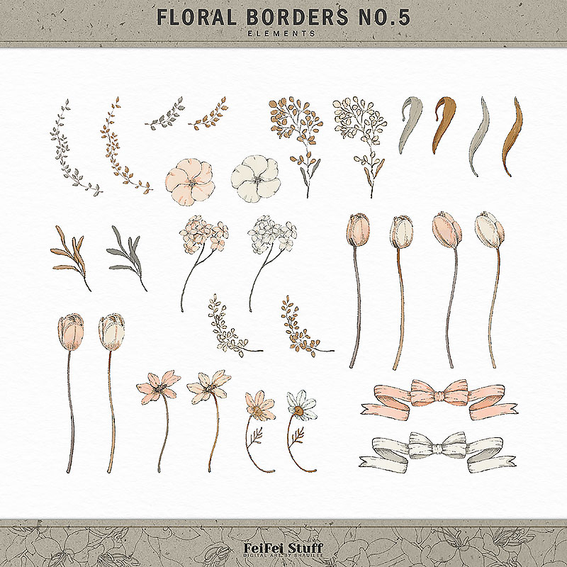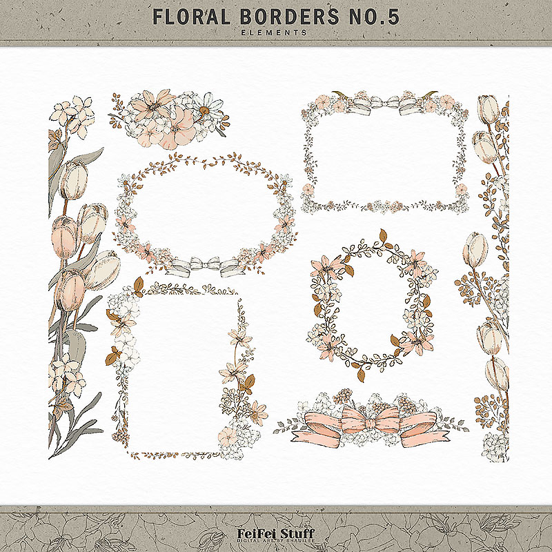 Delicate and whimsical floral borders to complete any scrapbook layout.