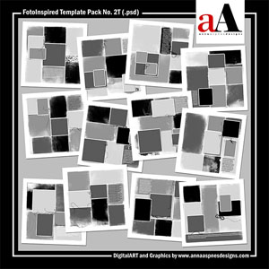 Twelve 12 X 12 artsy MultiFoto layered templates delivered in layered .psd format. This is part of a series of templates which form the foundation of my FotoInspired Project. The product includes: