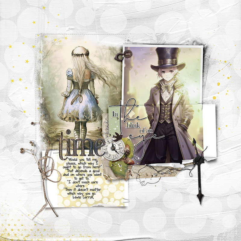 Includes several distressed linear clipping masks, multi-layer torn edge paper textured frames, staples, stitched frames and embellishments (tags, notion fasteners, ribbons, tag, frames, button, clock, heart, camera charm, vintage paper, lace, doilies, messy stitching).