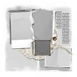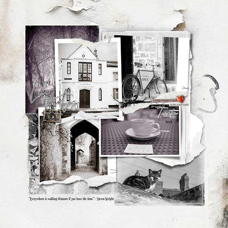 Includes several distressed linear clipping masks, multi-layer torn and curled edge paper textured frames, staples, stitched frames and embellishments (strings, ribbons, crown, clock and parts, frames, industrial buttons/brads, hearts, fasteners, notions, vintage paper, lace, doilies, messy stitching).