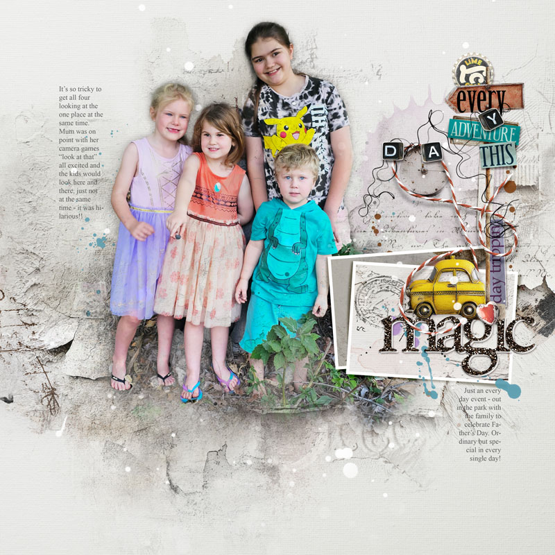 All layer styles, stone and distressed peeling paint wall texture transfers, splatters, paper textures, frames, brushwork and textboxes shown are included.