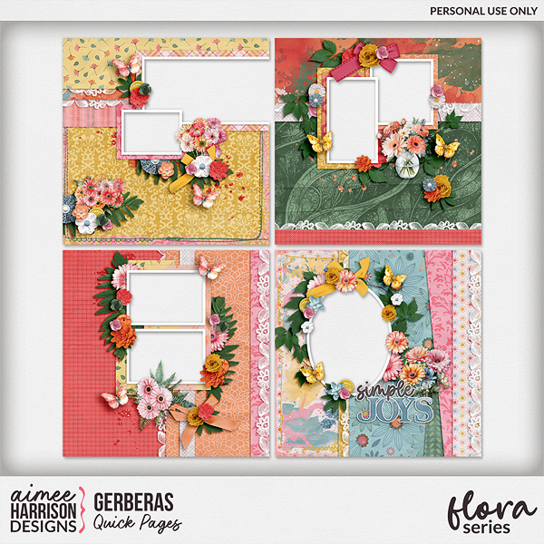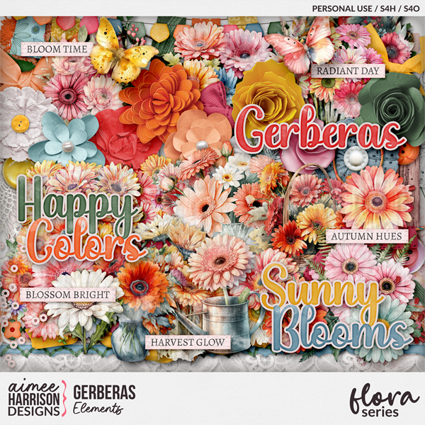 With a palette of red, peach, orange, yellow, sage, light blue, and pink, this collection radiates both late summer sunshine and the cozy glow of early autumn. Bursting with Gerbera flowers in every shade, it’s the perfect way to add a pop of joy and color to your scrapbook pages.