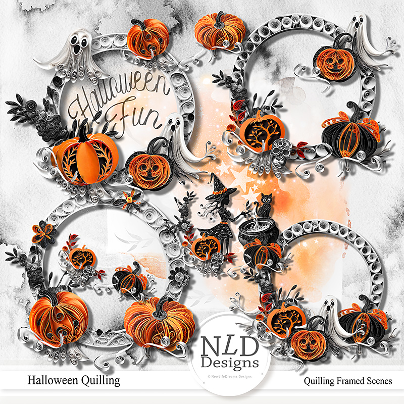 The Halloween Quilling by NLD Designs includes an assortment of papers and elements to help you create halloween,autumn and funny scrapbook pages and printable art projects.