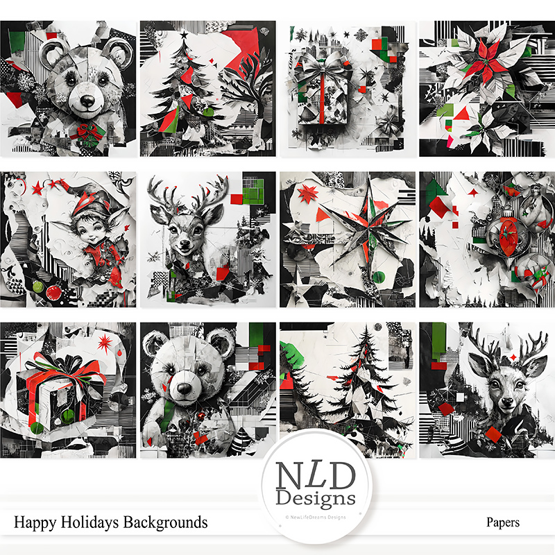 Happy Holidays Backgrounds - Digital Scrapbooking Papers by NLD Designs