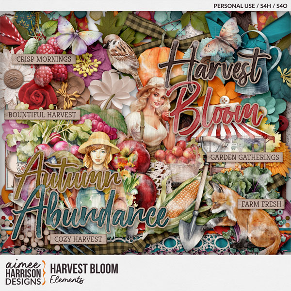 Harvest Bloom is a rich and colorful digital scrapbooking collection that celebrates the turning of seasons and the beauty of the harvest.