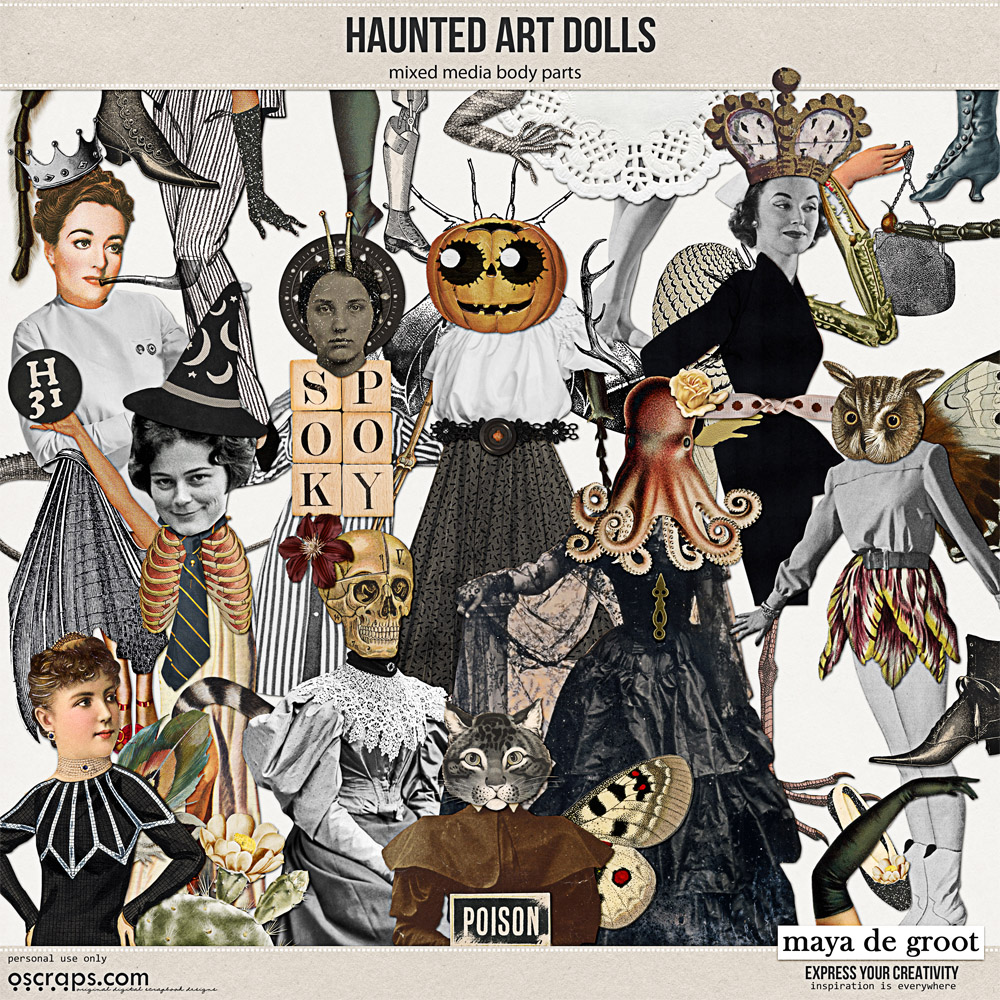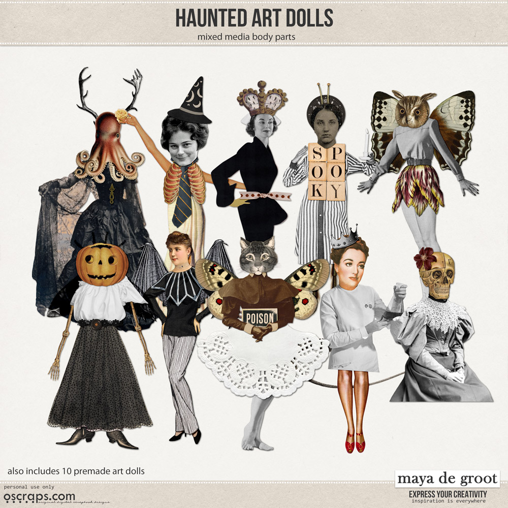 Element pack containing bodyparts to create your own Haunted Art Dolls.
