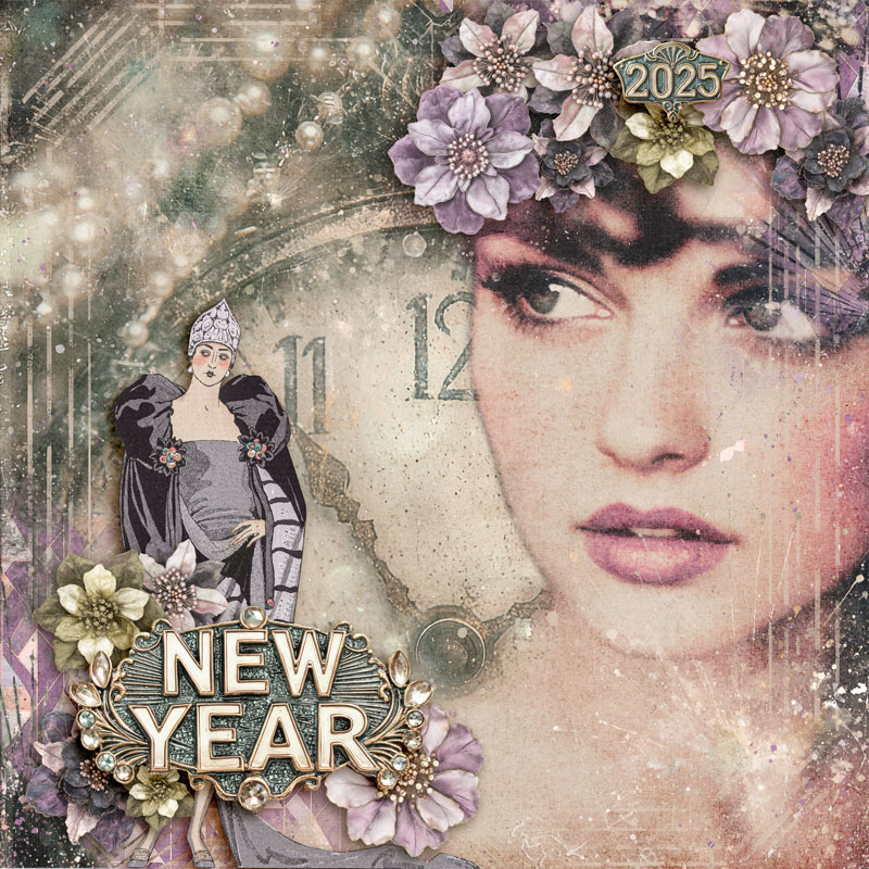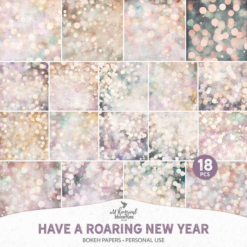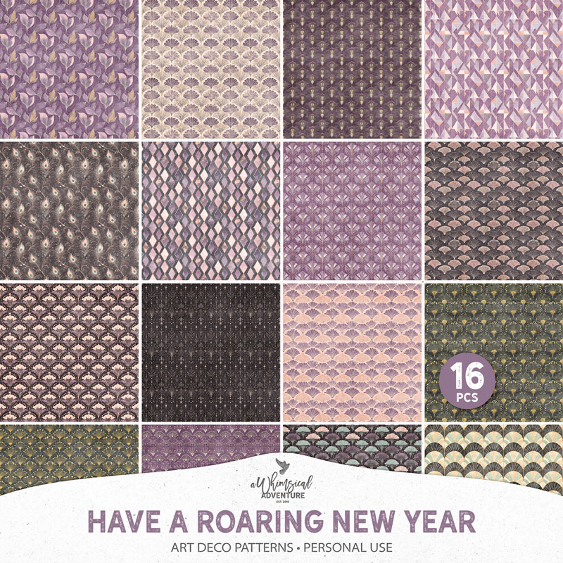 Relive the glamour, opulence, and festive spirit of the Roaring Twenties with "Have A Roaring New Year", a vintage-inspired digital collection filled with elegance and charm. Featuring authentic Barbier fashion plate cutouts, intricate Art Deco patterns, dazzling bokeh papers, sparkling word trinkets, and aesthetic photos, this collection captures the essence of a Jazz Age New Year’s Eve. With a refined palette of Frosted Pearl, Moonlit Lavender, Blush Petal, Vintage Plum, Mint Whisper, Evergreen Depth, Golden Moss, and Amber Glow, every piece exudes sophistication and timeless celebration.