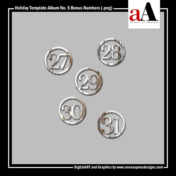BONUS numbers to take you through the end of December (days 27-31 in .png format) with a Drop Shadow Layer Style (.asl format).
