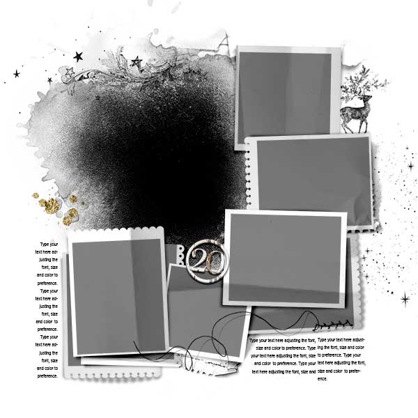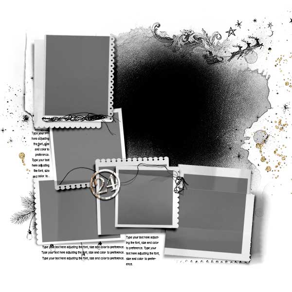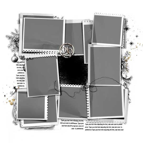 A collection of 26 - 12 X 12 blended, layered, holiday and Christmas templates for artsy digital scrapbooking and photobook project making: