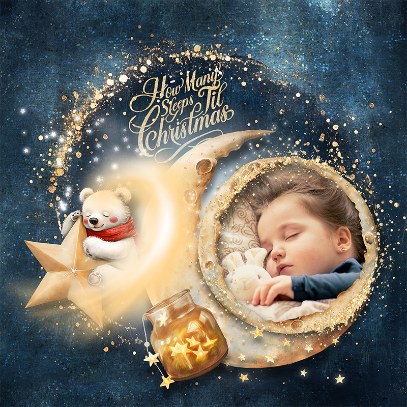 How Many Sleeps Til' Christmas Mini Kit is a pack of digital elements & papers perfect for your scrapbooking projects.