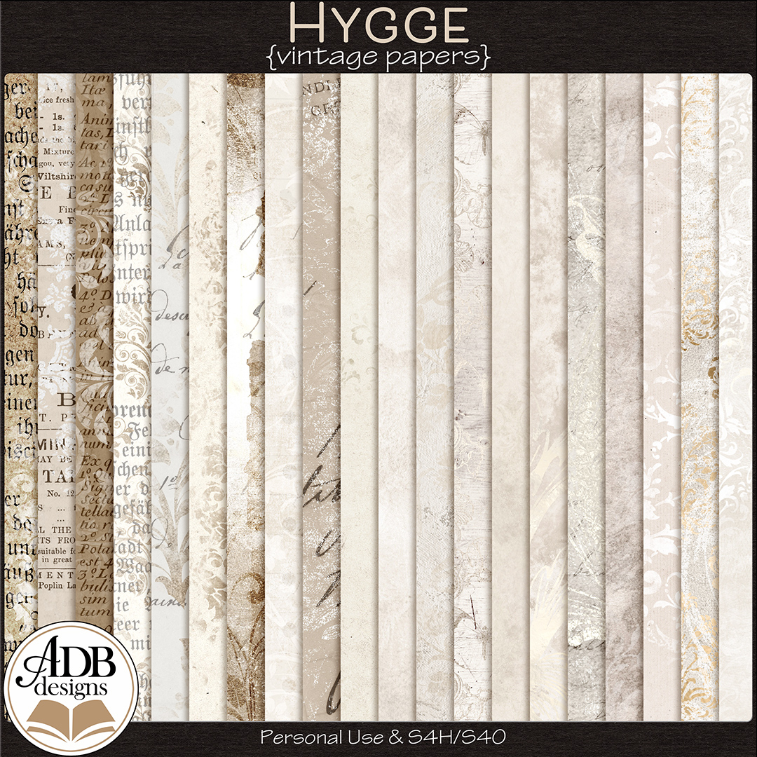 Winter red and forest green mixed with neutral browns and white, give the Hygge digtal scrapbook collection a feeling of comfort and warmth. Dried leaves are sprinkled in with paper flowers, checked ribbons, and lace. Designed to scrap fall and winter photos but versatile enough for pictures of your summer garden or vintage family photos too.