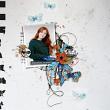Detailed Element List: Hand Stitched Banner made from old vintage tickets, painted butterfly, glass button, six ephemera papers comprising of bits from vintage books, ticket stubs and tickets or the reverse of tickets, one patterned vintage fabric piece, four assorted flowers, paper frame, paint splatter, eight journal prompts, three foliage elements, six messy threads and machine stitched pieces, eight paper pieces comprising of paper scraps, stamped papers, folded map, painted paper, vintage papers, butterfly pin, paper ribbon and flat ribbon bit, scattered sequins, vintage text fragment, messy marks and butterfly stamp, clustered staples, tag and paper tape.