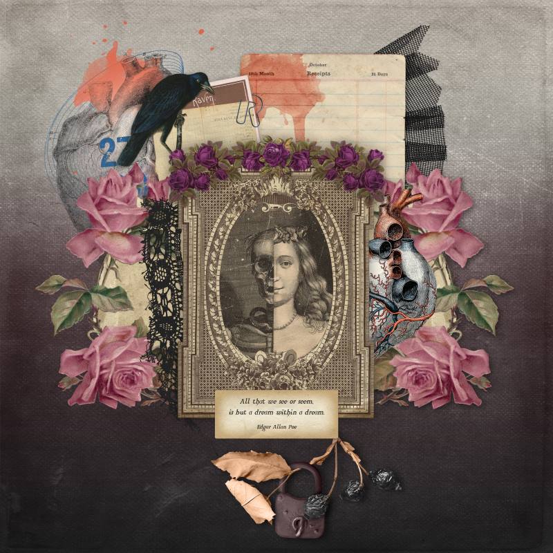 Uses: digital scrapbooking, art journaling, gothic-themed layouts, Halloween storytelling, dark romance journals, printable collage art